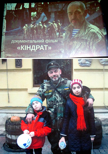 В ки╖вському к╕нотеатр╕ «К╕нопанорама» в╕дбулася презентац╕я документального ф╕льму «К╕ндрат». Це розпов╕дь про заступника командира батальйону ОУН Василя К╕ндрацького (позивний «К╕ндрат»). Василь К╕ндрацький народився в сел╕ Струпк╕в на ╤вано-Франк╕вщин╕, служив у пов╕тряно-десантних в╕йськах радянсько╖ арм╕╖. Зак╕нчив факультет журнал╕стики Льв╕вського ун╕верситету ╕ льв╕вський рег╕ональний ╕нститут державного управл╕ння Нац╕онально╖ академ╕╖ державного управл╕ння при Президентов╕ Укра╖ни. К╕ндрацький був активним учасником Помаранчево╖ революц╕╖ ╕ Революц╕╖ Г╕дност╕. На початку листопада 2014 року К╕ндрацький вступив до батальйону ОУН ╕ з╕ збро╓ю в руках захищав соборн╕сть ╕ незалежн╕сть Укра╖ни на Донбас╕. 25 травня 2015 року «К╕ндрат», ризикуючи життям, п╕днявся на вежу нап╕взруйновано╖ шахти ╕ встановив там Державний Прапор Укра╖ни ╕ прапор ОУН. Через три дн╕ Василь К╕ндрацький був тяжко поранений вибухом снаряда ╕з рос╕йського танка Т-72 ╕ помер. Залишилися сиротами неповнол╕тн╕ д╕ти «К╕ндрата» Ангел╕на ╕ Ярослав. Василя К╕ндрацького нагороджено орденом Богдана Хмельницького ╕ орденом «Народний Герой Укра╖ни» посмертно. Автор сценар╕ю ф╕льму «К╕ндрат» - бойовий побратим К╕ндрацького поет Борис Гуменюк. Режисер ф╕льму Юр╕й Пупир╕н теж був особисто знайомий з «К╕ндратом». На презентац╕╖ про героя згадували голова ОУН Богдан Червак, м╕н╕стр осв╕ти Укра╖ни Л╕л╕я Гриневич, Борис Гуменюк. Майор Борис Гончар сказав:»Солдати, як╕ захищають Укра╖ну – це звичайн╕ укра╖нц╕, як╕ змушен╕ стати солдатами». Про фронт майор Гончар сказав:»Там менше бруду. Тому багато хто хоче повернутися туди». Презентац╕я з╕брала багатьох бойових побратим╕в «К╕ндрата». Бо╓ць батальйону ОУН Володимир Паламарчук зазначив: «Про Василя К╕ндрацького говорять т╕льки хороше. Це була винятково позитивна людина».