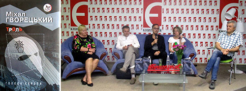 В столичн╕й книгарн╕ «╢» в╕дбулась презентац╕я укра╖нського перекладу к╕берпанкового роману «Троль» словацького письменника М╕хала Гворецького. Це друга книга в сер╕╖ «Голоси ╢вропи» видавництва «Знання». Автор народився 1976 року. Його книжки перекладен╕ 12-ма мовами. Укра╖нське видання «Троля» ╓ першим ╕ншомовним перекладом цього роману. Вже готуються болгарський ╕ н╕мецький переклади. У презентац╕╖ взяли участь М╕хал Гворецький, другий секретар Посольства Словаччини в Укра╖н╕ Бран╕слав Гало, перекладач Галина Малик, професор Ки╓во-Могилянсько╖ академ╕╖ Олекс╕й Гарань, психолог Вадим Васютинський ╕ перекладач Марина Заб╕яка. Тема книги дуже актуальна. Розвиток соц╕альних мереж посприяв зб╕льшенню масштаб╕в ╕нформац╕йно╖ в╕йни. Поширення неправдивих новин набуло розм╕р╕в пошест╕. В роман╕ дво╓ молодих людей ╕дуть працювати на «кухню» сучасного трол╕нгу, щоб викрити ╖╖. Орган╕зац╕я трол╕в працю╓ на ╤мпер╕ю, в як╕й неважко вп╕знати Рос╕ю. Рос╕я, д╕йсно, поширю╓ на Зах╕д фальшив╕ новини. М╕хал Гворецький розпов╕да╓: «У мене тро╓ малих д╕тей. Тому я пишу дуже пов╕льно. Коли почав писати цей роман, то думав, що пишу наукову фантастику, те, що буде колись у майбутньому. Але поки писав, реальн╕сть наздогнала й перегнала мене. «Троль» дуже добре пасу╓ до укра╖нського простору». Перекладач «Троля» укра╖нською мовою Галина Малик сказала: «Я бачила в роман╕ т╕ проблеми, як╕ ╓ у нас ╕ як╕ ще будуть. Я переклала книгу на одному подиху». Укра╖нський читач в╕дразу вп╕зна╓ в роман╕ сюжети ╕нформац╕йно╖ в╕йни Рос╕╖ проти Укра╖ни. Наприклад: «Але досл╕дження швидко ускладнювалися. У новинах ми пом╕тили молодих ж╕нок, що плакали ╕ жал╕сно розпов╕дали, як ворож╕ солдати за фронтовою л╕н╕╓ю групою з╜валтували ╖х. Св╕дчення виглядали правдиво. Та через к╕лька годин ми побачили тих самих д╕вчат на в╕део, де вони виступали як учасниц╕ демонстрац╕╖ в м╕ст╕ й б╕йц╕ в окопах. Вза╓мовиключн╕ твердження режисер позл╕плював недбало, зовс╕м не боячись, що ми його сп╕йма╓мо». А ось геро╖ вже сам╕ працюють з тролями ╤мпер╕╖: «Вацлава Гавела ми змалювали як збанкрут╕лого алкогол╕ка, псевдодраматурга, псевдопол╕тика, ворога серб╕в, агента розв╕дки ╕ зрадника, купленого НАТО. Логотип П╕вн╕чноатлантичного альянсу б╕ля його фотограф╕╖ ми домалювали, щоб вийшла свастика. Ми довели, що Укра╖на н╕коли не ╕снувала. Збитий л╕так був наповнений мерцями ще перед зльотом. В ╕нш╕й верс╕╖ його збила н╕мецька фармацевтична ф╕рма, щоб заборонити вченим у л╕таку в╕дкрити л╕ки проти СН╤Ду. Злочин ми класиф╕кували як теракт ЦРУ ╕ вимагали для нього м╕жнародного трибуналу». А ось ╕ боротьба проти трол╕нгу в ╤нтернет╕: «Д╕вчина не казала н╕чого нового. Радила не в╕рити кожн╕й першорядн╕й брутальн╕й ╕ бульварн╕й дурниц╕ у Фейсбуц╕. Перев╕ряти ╕нформац╕ю. Керуватися здоровим глуздом, не впадати у параною. Зрозум╕ти, що пропаганда ма╓ ╕нш╕ законом╕рност╕ та правила, н╕ж випуск новин. Статт╕ – рекомендувала – справд╕ перечитувати, не обмежуватися заголовком, вид╕леним шрифтом з картинкою чи в╕део. Перепитувати ╕нтенсивн╕ше, н╕ж колись. В╕дстежувати ╕ перев╕ряти к╕лька ресурс╕в. Не ховатися в сво╖й мушл╕. Гарно. Лише якби ╖╖ порад хтось дотримувався». Наприк╕нц╕ кни