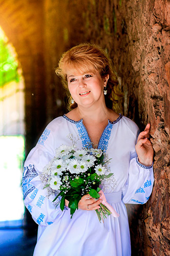 ВИШИВАНКА Поп╕д хатою в садочку Шию милому сорочку, Шию, рясно вишиваю, Н╕жн╕сть з ниткою м╕шаю. Сто раз╕в перехрестила: Будь з коханим, вища сило. У дороз╕ й пол╕ битви Будь ╕з ним, моя молитво, Щоби не лишень красивий – Був для кул╕ невразливий. ╤ невидимий м╕й сок╕л Для лихого злого ока. Хай звитяжно б’╓ться серце: Хрестик, хрестик, ще раз хрестик. А в╕дступить вража рать – Буде тиша, буде й гладь: Гладдю вишию я гожу Вишиванку переможну… Поки ж хрестики в рядочок: Жолудь ось, а ось листочок… Хай в╕н бачить в снах коротких Мою ласку ╕ турботу. Хай верта з ус╕х дор╕г На родинний наш пор╕г. ╤з любов’ю, ╕з любов’ю Жертву в храм в╕ддам безкровну. Стань у пом╕ч, херувим, – Най повернеться живим.
