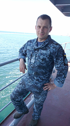 Простий хлопчина з Кропивницького колись ╕ подумати не м╕г, що стане командиром в╕йськового корабля. ╤нколи виникали думки стати в╕йськовим, але щоб командиром... Василь Швачич згаду╓, як у 9-му клас╕ довго роздумував над майбутньою профес╕╓ю. П╕д час розмови з батьком той запитав: «Синку, хочеш, щоб у тебе були золот╕ погони, б╕лий к╕тель, кортик та вс╕ д╕вчата були тво╖ми?». - З приводу д╕вчат в╕н, зв╕сно, жартував. Але тод╕ його слова мене зачепили. ╤ я задумався - а чому б не спробувати? Чому не пов’язати життя з морем, до якого з дитинства так тягнуло? Вл╕тку бабуся частенько в╕двозила мене у Коблево на в╕дпочинок. Пам’ятаю, я завжди чекав цього моменту. Юнаку довелося останн╕ два роки у школ╕ посилено займатися математикою, ф╕зикою та спортом. Але все марно. - Для вступу до Севастопольського В╕йськово-Морського ╕нституту не вистачило буквально 2 бали, проте рейтинг був достатн╕м, щоб потрапити до В╕йськово-морського коледжу старшинського складу, який знаходився у склад╕ СВМ╤. Так я став на першу сходинку до сво╓╖ мети. Отримавши перше в╕йськове звання м╕чман та прослуживши р╕к на посад╕ командира рад╕отехн╕чно╖ станц╕╖, я, нарешт╕, потрапив до в╕йськово-морського вишу на 3-й курс. У п╕дсумку витратив 7 рок╕в зам╕сть 5-ти, але, врешт╕-решт, отримав омр╕яний кортик та оф╕церськ╕ погони, - говорить Василь Швачич. Служба лейтенанта розпочалася з посади командира г╕дроакустично╖ групи на бойовому корабл╕ - морському тральщику «Черкаси», який дислокувався у смт Новоозерне. Дал╕ був малий протичовновий корабель «Хмельницький», де займав посаду командира БЧ-4-7 (бойова частина зв’язку та управл╕ння). Згодом п╕шов на п╕двищення у м╕сто Севастополь – пом╕чником командира фрегату «Гетьман Сагайдачний». Саме у той час, коли корабель брав участь у антип╕ратських операц╕ях НАТО «Океанський щит» та ╢вропейського союзу «Аталанта» ╕ в╕дбулася окупац╕я Криму Рос╕╓ю. - Тому п╕сля усп╕шного виконання поставлених завдань у березн╕ 2014 року поверталися ми вже не в Крим, а в Одесу. Н╕хто не знав, що буде дал╕, з кожним днем ситуац╕я на п╕востров╕ загострювалась. Особовий склад перебував у повн╕й бойов╕й готовност╕. Але найб╕льше бентежило ек╕паж те, що с╕м’╖ та р╕дн╕ залишалися п╕д контролем кра╖ни-агресора. А ми ц╕лодобово знаходилися на корабл╕ ╕ не могли ╖м допомогти. Нав╕ть перевезти дружин, д╕тей та реч╕ не було жодно╖ можливост╕, - згаду╓ оф╕цер. – Тому деяк╕ в╕йськовослужбовц╕ не витримали напруги ╕ самов╕льно повернулися до Криму. Ще 40% особового складу зв╕льнилися в Одес╕. С╕м’я Василя на той момент проживала у ╢впатор╕╖. Покидати корабель в╕н не збирався, проте добре розум╕в, що питання евакуац╕╖ кохано╖ та маленько╖ доньки треба вир╕шувати. Тим паче, що дружина п╕шла з м╕л╕ц╕╖, яка перейшла на б╕к окупанта, та залишилася без роботи. - На жаль, н╕хто ╕з кер╕вництва флоту не переймався нашими проблемами, болючими питаннями ек╕пажу, ╕ це, певно, одна з причин, через яку кримчан на корабл╕ ставало все менше. Однак я все ж таки знайшов волонтер╕в ╕з Запор╕жжя, як╕ допомогли перевезти мою родину до П╕вденно╖ Пальм╕ри, - пригаду╓ Василь. В 2017 роц╕ кап╕тана 3 рангу Швачича призначають командиром пошуково-рятувального судна «Донбас». Корабель управл╕ння "Донбас" був четвертим п
