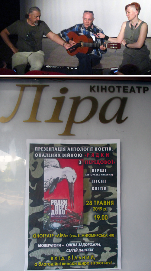28 травня в ки╖вському к╕нотеатр╕ «Л╕ра» в╕дбулася презентац╕я антолог╕╖ «Рядки з передово╖». Книга м╕стить в╕рш╕ укра╖нських поет╕в, як╕ захищали Укра╖ну на Донбас╕. Це ╕ во╖ни, ╕ волонтери.  Сво╖ в╕рш╕ прочитали Серг╕й Пантюк ╕ Олена Задорожна, Тетяна Ярошенко ╕ Роман Семисал. Бард ╤гор Двигало виконав п╕сню «Нев╕домий солдат», яку в╕н присвятив ус╕м, хто не повернувся з фронту, зокрема, сво╓му батьков╕ Григор╕ю. Також виступили барди В╕ктор Нестерук, Володимир Пироженко ╕ Дмитро Ленартович. Також в╕дбувся перегляд в╕деокл╕пу п╕сн╕ на слова Олени Задорожно╖ про д╕вчат, як╕ беруть до рук зброю ╕ йдуть на в╕йну. Роман Семисал зауважив, що в╕йна – це звичайна чолов╕ча брудна робота. ╤ робити ╖╖ повинн╕ саме чолов╕ки, не чекаючи подяки. Адже чолов╕ки повинн╕ захищати Батьк╕вщину.