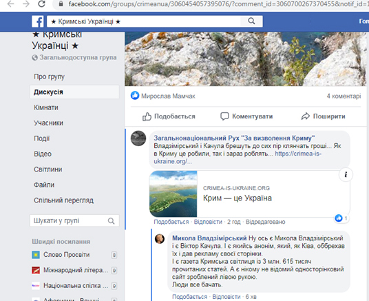 Шановн╕ читач╕, просимо вашо╖ поради. Тиждень тому мали необережн╕сть розм╕стити у в╕дкрит╕й загальнодоступн╕й груп╕ у Фейсбуц╕ «Кримськ╕ укра╖нц╕» (https://www.facebook.com/groups/crimeanua) заклик допомогти продовжити життя сайту «Кримсько╖ св╕тлиц╕» (http://www.svitlytsia.crimea.ua), який на волонтерських умовах продовжу╓ утримувати в окупованому Криму невеличкий гурт «св╕тличан-залишенц╕в», ╕ посприяти в порятунку - оцифруванн╕ багатол╕тнього ун╕кального арх╕ву газети. ╤ ось що «прилет╕ло» у в╕дпов╕дь (цю переписку з╕ стор╕нки «Кримських укра╖нц╕в» згодом було видалено, скриншоти можна переглянути на нашому ФБ-ресурс╕ - https://www.facebook.com/krymskasvitlytsia): ВИ БРЕШЕТЕ, ВИ КЛЯНЧИТЕ ГРОШ╤, ВИ ШАНТАЖУ╢ТЕ ТИМ АРХ╤ВОМ ╕ т. ╕н. Браття-укра╖нц╕! Може, ми помилилися адресою? Може, це не до «Кримських укра╖нц╕в», а до якихось кримських малорос╕в чи хохл╕в ми забрели на сайт? Ми що – на зарплату соб╕ «клянчимо»? Що ж ви тод╕ про конкурс ╕м. Д. Кононенка не згадали – щоб його провести, нашкребти для д╕тей на призи, ст╕льки щороку «клянчити» доводиться! Чи, може, не варто – нав╕що чухра╖нцям т╕ конкурси, сайти й арх╕ви? Ось тако╖ просимо поради-розради. ╤, не втрачаючи над╕╖ (бо переконан╕, що ╕ в Криму, ╕ в Ки╓в╕, ╕ в ус╕й Укра╖н╕ укра╖нц╕в усе ж набагато б╕льше, н╕ж хохл╕в-малорос╕в!), знову зверта╓мося по допомогу до наших читач╕в: наближа╓ться «момент ╕стини» - потр╕бно сплатити за хостинг та доменне ╕м'я, оновити програмне забезпечення, хоча б косметично модерн╕зувати сайт «Кримсько╖ св╕тлиц╕» (т╕╓╖, справжньо╖, що в Криму, ╕ яка теж тут, як може, не да╓ забувати про Укра╖ну!). Просимо – хто ск╕льки зможе – перерахувати кошти на картку «Приватбанку» 5457 0822 8185 0151 на ╕м'я Владз╕м╕рського Миколи ╤вановича, адм╕н╕стратора сайту. ╤ ще про одне. На жаль, з Криму не видно, чи д╕ють в Укра╖н╕ як╕сь грантов╕ програми, як╕ п╕дтримали б оцифрування арх╕ву «Кримсько╖ св╕тлиц╕». Якщо читачам в╕домо, де й в╕д кого можна було б отримати таку п╕дтримку, п╕дкаж╕ть, будь ласка! (Ел. пошта «КС» – kr_svit@meta.ua) З повагою – Кримськ╕ св╕тличани