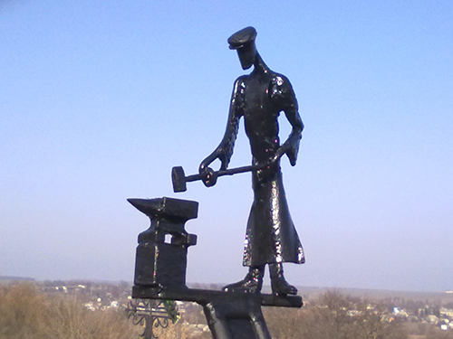 Сьогодн╕ День батька. ╤ я Вас не забув, р╕дний… М╕й батько — Олекс╕й Прокопович Жадько був заводським ковалем – працював на цукровому завод╕ з 1946 року. Якщо вийти за околицю села ╤ваньки на Черкащин╕ та стати на пагорб╕, то видно вдалин╕, н╕би меч п╕днесений угору — димар цукроварн╕. Його не можуть похитнути н╕ морози, н╕ спека, н╕ бурев╕╖. Бо в╕н обхоплений зал╕зними обручами, й ними скр╕плював цю споруду м╕й батько. Був малописьменний, його шкарубка в╕д молота й усякого зал╕зяча рука могла щось написати, але друковане читав непогано. ╤ це, мабуть, тому, що ц╕кався лише книгою, яка була любимою у хат╕ ╕ яку знав майже напам’ять: Екзюпер╕ «Маленький принц», а щоденно – газети: районку та «С╕льськ╕ в╕ст╕». Слово «кузнець» («кузнец») знаходимо в жит╕╖ Феодос╕я Печерського у списку XII стол╕ття (кузнець скував для нього зал╕зний ланцюг, яким Феодос╕й обперезався по т╕лу). ╤снувало й ╕нше визначення рем╕сника, який працював з металом — «ковачь», «коваль». ╤з школи завжди заб╕гав до батька в кузню. По-перше, завжди пригощав мене кл╓ром – солодким густим сиропом. А по-друге, б╕ля горна обов’язково товклося чимало роб╕тник╕в ╕ перепов╕дали новини: хто народився, одружився, сипались анекдоти, спомини з минулих л╕т, згадки про в╕йну. Особист╕ пригоди перепл╕талися з характеристиками р╕зних людей, з пол╕тикою, хатн╕ми справами. А батько чаклував б╕ля горна. Ось вихоплю╓ ╕з вогню заготовку ╕ точними ударами молотка форму╓ потр╕бну конф╕гурац╕ю. Одну, другу… ╤ так ╕з дня в день, з року в р╕к. А я, приткнувшись збоку, стежив, як важко фуркав шк╕ряний м╕х, язички полум‘я червон╕ли й вискакували з глибини вугляно╖ купи, а батько довгими щипцями перекручував шмат розпеченого металу. В╕н був такого високого р╕вня профес╕йност╕, що «пересипав» (переплавляв ╕ наново виковував) сокири з розбитими обухами, «насталював» визублен╕ сапи, виковував гостр╕ коси ╕ к╕льця до них, що з’╓днують косу з к╕ссям – ще й нин╕ чи не в кожному подв╕р’╖ нашого села збереглася його добротна робота — санчата, сапи, що «сам╕ чапають», ╕ всяка др╕б╕день в господарств╕. Чи ви бачили, чи чули, як на ковадл╕ дворог╕м гаряче б‘ють два молотки в пар╕ – майстра ╕ пом╕чника? Великий — то сила, але сл╕па, це — д╕я, але не самост╕йна, це — пол╕т, але без мети. Тут на допомогу приб╕га╓ молоток у п‘ять раз╕в менший. Ось жилав╕ батьков╕ руки вихопили кл╕щами з огненного горна обрусок червоно-б╕лого металу — в ╕скрах, ╕ ривком кинули на ковадло. Дорога кожна мить — ╕ встига╓ й зиркнути на мене – мовляв, ось так, сину, й ку╓ться доля! А великий молоток у руках пом╕чника уже жде-чека╓, п╕днесений до р╕вня плеча в таких самих, мускулистих руках. «Дзень – день-дзень!» – засп╕вав малий молоток ковадлом, збоку в╕д бруска, як барабанний др╕б. Але це ще не робота з металом, це — проба, засп╕в, початкова крапля дощу перед бурею… Великий молот здригнувся, напружився, готовий з усього маху бабахнути по розпеченому шматку в м╕сце, яке показав батько… — Отут! Умить страшна сила з-над голови молотобойця мигнула в пов╕тр╕ й люто вдарила по бруску, в точно показане м╕сце – розпечен╕ з╕рки шуганули вр╕зноб╕ч, аж вс╕ змахнули руками, остер╕гаючись. А батько вже ув╕йшов у раж, йому нема╓ часу роздивлятися чи попереджати про небезпеку в╕д ╕с