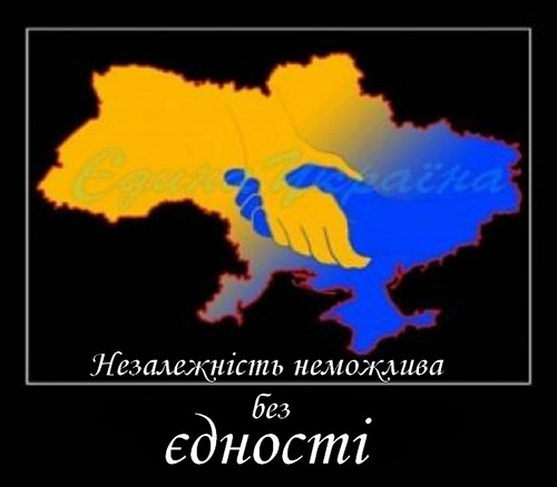 "Ми живемо ╕ житимем. Дарма, Що нас обс╕ли тимчасов╕ злидн╕, Хоч це ╕ не на день, ╕ не на три дн╕. Ми ╓ народ, не ледар╕, не сидн╕. Знеславлен╕, ми не йдемо з ума - Не т╕льки ╕д╕оти ╕ сексоти, ╢ в нас борц╕, ╕ ╓ в нас патр╕оти. В нас ум ╕ воля, ╕ роздолля ╓. Ми не воли-невольники. Вста╓ З кол╕н Вкра╖на ╕ пита╓: "Хто ти?" (Олег Орач)