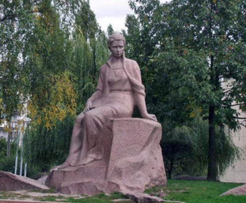 В 13 рок╕в зухвале д╕вчисько обрало соб╕ псевдон╕м, який став ╖╖ новим ╕м’ям – на в╕ки. Гордо назвалась Укра╖нкою – громадянкою не╕снуючо╖ держави. Втрачено╖ кра╖ни минулого – ╕ омр╕яно╖ кра╖ни майбутнього. Стала пом╕ж ними ╕ з’╓днала, зживила. ╥╖ першим в╕ршем, написаним у дев’ять рок╕в, був в╕рш «Над╕я» – не по-дитячому серйозний, присвячений р╕дн╕й людин╕ – т╕тц╕ Ел╕, батьков╕й сестр╕ Олен╕ Антон╕вн╕ Косач (на фото - в центр╕), яку в╕дправляли на сиб╕рське заслання.