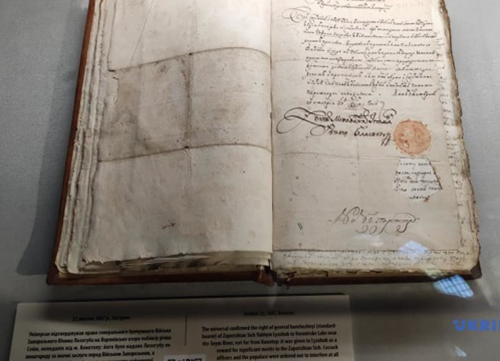 Побачити цей документ, а також булаву гетьмана ╤вана Мазепи можна на виставц╕ «Раритети Укра╖нсько╖ козацько╖ держави – Гетьманщини XVII-XVIII ст.: До 30-р╕ччя Незалежност╕ Укра╖ни». Як пов╕домля╓ кореспондент Укр╕нформу, про це йшлося п╕д час в╕дкриття виставки у понед╕лок в Нац╕ональному запов╕днику «Соф╕я Ки╖вська».