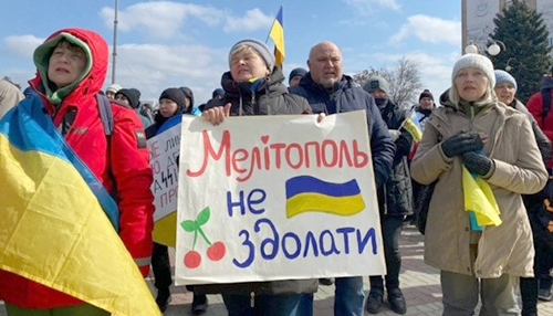 Рос╕йськ╕ в╕йськов╕ розраховували, що вони зможуть переконати мер╕в м╕ст, авторитетних людей п╕дтримати ╖х д╕╖. Вже минув м╕сяць в╕йни, але жодна авторитетна людина у Мел╕топол╕ чи будь-якому ╕ншому окупованому м╕ст╕ не вийшла на площу ╕ не сказала, що хоче рос╕йську федерац╕ю. ╤ цього не в╕дбудеться!