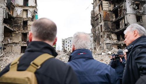 П╕сля в╕дв╕дання зруйнованих м╕ст п╕д Ки╓вом, зокрема Бородянки, делегац╕я з чотирьох президент╕в зустр╕лася у Ки╓в╕ з Президентом Укра╖ни Володимиром Зеленським та ╕ншими представниками укра╖нсько╖ влади.