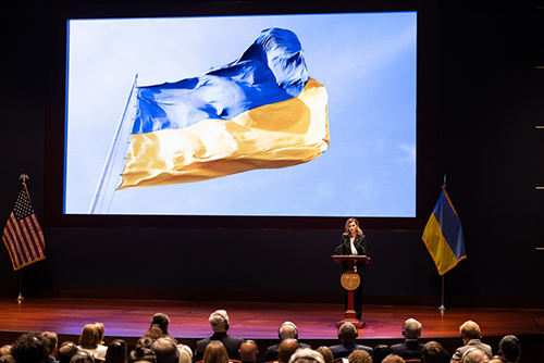 Перша лед╕ Укра╖ни стала першою дружиною ╕ноземного л╕дера, яка виступила у Конгрес╕ США. У цьому виступ╕ Олена Зеленська подякувала США за потужну п╕дтримку Укра╖ни та звернулася ╕з проханням допомогти спинити рос╕йський терор, а також надати б╕льше збро╖, щоби захистити мир та життя укра╖нц╕в.