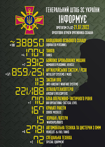 Генштаб: оперативна ╕нформац╕я на 18:00 21 липня 2022 р.