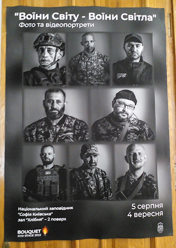 В рамках Фестивалю високого мистецтва «Букет» в Нац╕ональному запов╕днику «Соф╕я Ки╖вська» в╕дкрилася фотовиставка «Во╖ни Св╕ту – Во╖ни Св╕тла. Портрети». Тут представлено фото- ╕ в╕део-портрети ╕ноземц╕в, як╕ беруть участь у боротьб╕ укра╖нського народу проти московсько╖ агрес╕╖.