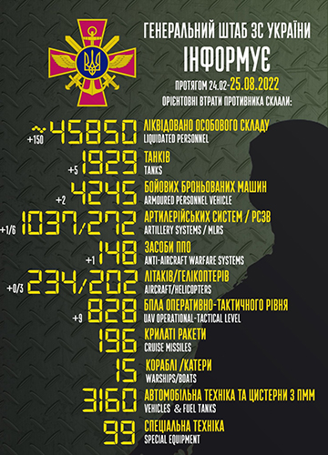 Генштаб: оперативна ╕нформац╕я на 18:00 25 серпня 2022 р.