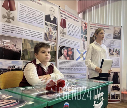 У КПГ зазначили, що у 2018 роц╕ парт╕я «╢дина Рос╕я» запустила про╓кт «парта героя». Його метою, як декларувалося, було розпов╕сти школярам "про земляк╕в, як╕ зробили доблесний вчинок ╕ проявили особисту мужн╕сть та готовн╕сть до самопожертви". Ран╕ше розм╕щували ╕нформац╕ю про загиблих солдат╕в Друго╖ св╕тово╖ в╕йни. Тепер на партах, за якими мають сид╕ти найкращ╕ учн╕, з'явилися б╕ограф╕╖ учасник╕в в╕йни рф проти Укра╖ни. Так, у 37-й школ╕ Севастополя встановили “парти геро╖в” ╕з даними про знищеного п╕д Херсоном снайпера Кирила Витоптова.