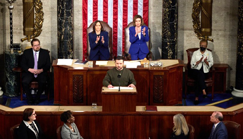 В╕дновлення м╕жнародного правопорядку – наше сп╕льне завдання. Нам потр╕бен мир. Укра╖на вже дала в╕дпов╕дн╕ пропозиц╕╖, ╕ щойно я обговорював ╖х ╕з Президентом Байденом – нашу формулу миру. Десять пункт╕в, як╕ можна й треба реал╕зувати заради нашо╖ сп╕льно╖ безпеки, гарантовано╖ на десятил╕ття вперед. ╤ сам╕т, який можна провести, – я радий в╕дзначити сьогодн╕, що Президент Байден п╕дтримав цю нашу ╕н╕ц╕ативу. Кожен ╕з вас, пан╕ та панове, може сприяти в ╖╖ реал╕зац╕╖. Щоб л╕дерство Америки залишалося беззаперечним, двопалатним ╕ двопарт╕йним.