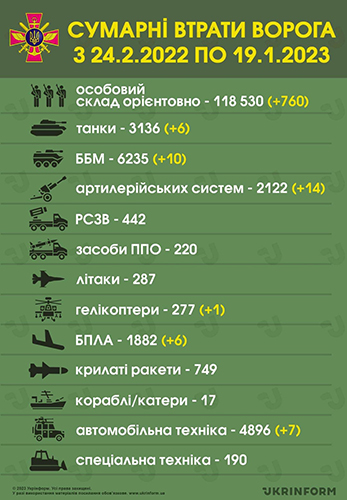 Ми з╕брали для вас ╕нформац╕ю про триста тридцятий день Велико╖ в╕йни: чим жили Укра╖на та укра╖нц╕ 19 с╕чня 2023 року.