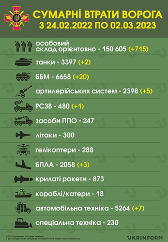 Ми з╕брали для вас ╕нформац╕ю про триста с╕мдесят другий день Велико╖ в╕йни: чим жили Укра╖на та укра╖нц╕ 2 березня 2023 року.