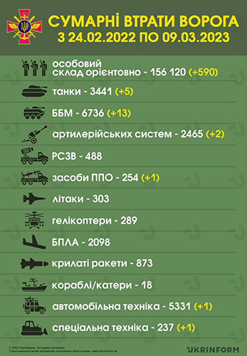 Ми з╕брали для вас ╕нформац╕ю про триста с╕мдесят дев’ятий день Велико╖ в╕йни: чим жили Укра╖на та укра╖нц╕ 9 березня 2023 року.