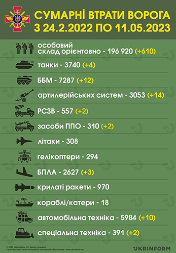 Ми з╕брали для вас ╕нформац╕ю про чотириста сорок другий день Велико╖ в╕йни: чим жили Укра╖на та укра╖нц╕ 11 травня 2023 року.