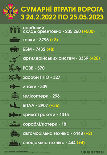 Ми з╕брали для вас ╕нформац╕ю про чотириста п’ятдесят шостий день Велико╖ в╕йни: чим жили Укра╖на та укра╖нц╕ 25 травня 2023 року.