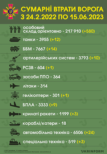 Ми з╕брали для вас ╕нформац╕ю про чотириста с╕мдесят сьомий день Велико╖ в╕йни: чим жили Укра╖на та укра╖нц╕ 15 червня 2023 року.