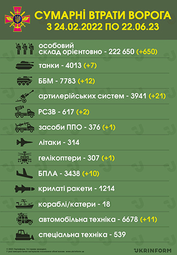 Ми з╕брали для вас ╕нформац╕ю про чотириста в╕с╕мдесят трет╕й день Велико╖ в╕йни: чим жили Укра╖на та укра╖нц╕ 22 червня 2023 року.