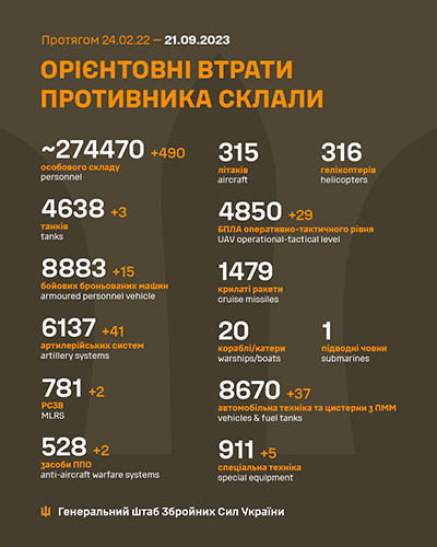 Ми з╕брали для вас ╕нформац╕ю про п’ятсот с╕мдесят п’ятий день Велико╖ в╕йни: чим жили Укра╖на та укра╖нц╕ 21 вересня 2023 року.