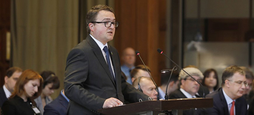 Для мене велика честь та в╕дпов╕дальн╕сть представляти свою державу у головному судовому орган╕ ООН у ц╕й справ╕. Як ╕ для багатьох, хто сл╕дку╓ за цим процесом, для мене важливим фактом ╓ те, що 32 держави долучилися з╕ сво╖ми ╕нтервенц╕ями. Бо це вперше в ╕стор╕╖ М╕жнародного суду ООН, коли така значна к╕льк╕сть держав висловили бажання долучитися до справи ╕ висловити сво╖ позиц╕╖ щодо тлумачення положень Конвенц╕╖ про геноцид, яка ╓ одним з основоположних м╕жнародних договор╕в сучасного м╕жнародного права.