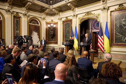 З╕ свого боку Джозеф Байден наголосив, що Сполучен╕ Штати й дал╕ надають Укра╖н╕ критично важливе озбро╓ння. За його словами, новий пакет в╕йськово╖ допомоги на 200 млн дол. м╕ститиме засоби протипов╕тряно╖ оборони, артилер╕ю та бо╓припаси.