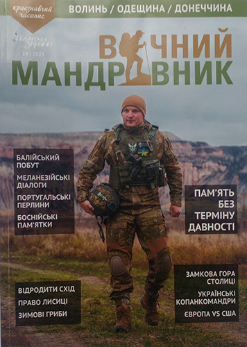 Подарунком для тих, хто любить мандрувати, стало 14 число кра╓знавчого, кольорового, багато ╕люстрованого часопису «В╕чний мандр╕вник», яке побачило св╕т напередодн╕ Нового 2024 року. Головний редактор видання, в╕йськовослужбовець В╕тал╕й Горбуленко у вступному слов╕ зазнача╓: «Цим номером продовжу╓мо нагадувати, що коли в кра╖н╕ трива╓ визвольна в╕йна проти загарбника, ми не можемо в╕д цього абстрагуватися. Мусимо бути ╓диними: захищати р╕дну землю або п╕дтримувати захисник╕в. У випуску чимало стор╕нок присвячено рег╕ону, який ми звикли називати Донбасом. В╕н у нас часто асоц╕ювався суто з промислов╕стю, але насправд╕ це дуже красивий край, який потребу╓ б╕льшо╖ уваги та в╕дновлення. ╤ ми не забува╓мо, що це наша укра╖нська земля, за яку продовжу╓мо боротися. А загалом, «В╕чний мандр╕вник» такий же, як ╕ ран╕ше. Ми розпов╕да╓мо про ц╕кав╕ кра╖ни, як╕ мр╕╓мо колись в╕дв╕дати, ╕ про красу нашо╖ р╕дно╖ Укра╖ни, яку тим паче потр╕бно бачити на власн╕ оч╕».