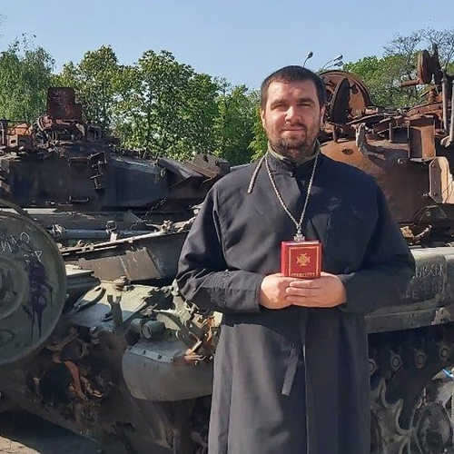 Священник ПЦУ Дмитро Каленюк – один з них. Йому 35 рок╕в. В╕н родом з Волин╕, ╕ з першого дня в╕йни в╕н у в╕йську. Ми зустр╕лися ╕з геро╓м нашо╖ публ╕кац╕╖ у Ки╓в╕, де в╕н навча╓ться на курсах капелан╕в. Нашу розмову переривають дзв╕нки, ╕ на деяк╕ з них отець Дмитро в╕дпов╕да╓: якщо це дружина, побратим, волонтер або вдова загиблого побратима.