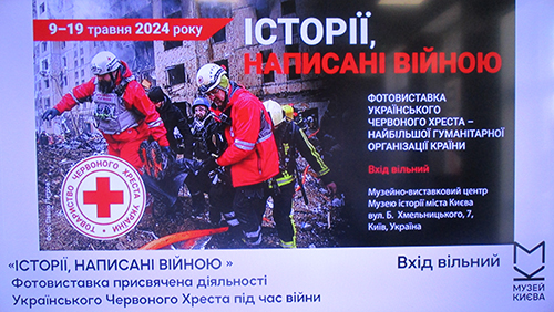 9 травня в Музе╖ ╕стор╕╖ м╕ста Ки╓ва в╕дкрилася фотовиставка «╤стор╕╖, написан╕ в╕йною». Вона ознайомлю╓ з д╕яльн╕стю Укра╖нського Червоного Хреста, найб╕льшо╖ гуман╕тарно╖ орган╕зац╕╖ нашо╖ кра╖ни, п╕д час рос╕йсько-укра╖нсько╖ в╕йни ╕ присвячена Всесв╕тньому дню Червоного Хреста ╕ Червоного П╕вм╕сяця, який в╕дзначають у всьому св╕т╕ 8 травня.