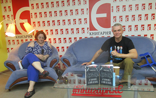 6 червня в ки╖вськ╕й книгарн╕ «╢» Алла Комарова провела презентац╕ю роману Дмитра Томчука «Не зупиняйте б╕лий автобус».