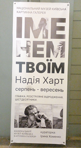 В Нац╕ональному музе╖ «Ки╖вська картинна галерея» експону╓ться виставка Над╕╖ Харт «╤менем тво╖м». Художниця представила граф╕чн╕ портрети представник╕в Розстр╕ляного В╕дродження (укра╖нського л╕тературно-мистецького покол╕ння 1920-30-х рок╕в, яке зазнало великого терору з боку радянсько╖ влади) та ш╕стдесятник╕в (опозиц╕йного руху укра╖нсько╖ творчо╖ молод╕, що виник у пер╕од «в╕длиги» п╕сля смерт╕ Стал╕на).