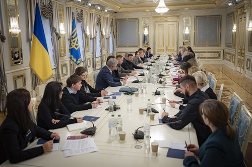 Президент Укра╖ни Володимир Зеленський зустр╕вся з представниками укра╖нського громадянського сусп╕льства, обговорив ╕з ними План перемоги та закликав працювати разом для реал╕зац╕╖ його пункт╕в.