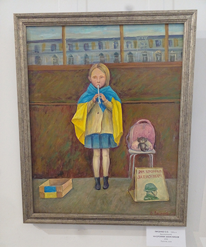 В Будинку художника в Ки╓в╕ експону╓ться всеукра╖нська виставка живопису ╕ скульптури «Шлях до перемоги. Полум’яний тил». Митц╕ в╕добразили трагед╕ю ╕ геро╖зм укра╖нського тилу в сучасн╕й рос╕йсько-укра╖нськ╕й в╕йн╕. Прац╕вники Служби з надзвичайних ситуац╕й гасять пожежу ╕ розбирають ру╖ни – насл╕док обстр╕лу рос╕йськими ракетами Ки╓ва. На портретах спок╕йн╕ ╕ впевнен╕ в перемоз╕ укра╖нськ╕ в╕йськовики. Медики рятують життя тяжко пораненим захисникам Укра╖ни. На зал╕зничному вокзал╕ маса людей, яких рос╕йський агресор примусив стати б╕женцями. Маленька д╕вчинка, загорнувшись у синьо-жовтий прапор, гра╓ на соп╕лц╕, а поруч напис: «На брон╕ки захисникам». На тл╕ спалених, зруйнованих в╕йною будинк╕в ростуть кв╕ти. Життя трива╓. Укра╖ну не перемогти.