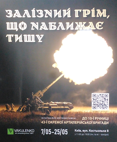 7 травня в ки╖вськ╕й художн╕й галере╖ “Vakulenko” в╕дкрилася до 10-╖ р╕чниц╕ створення 43-╖ окремо╖ артилер╕йсько╖ бригади ╕м. Гетьмана Тараса Трясила благод╕йна фотовиставка “Зал╕зний гр╕м, що наближа╓ тишу”.