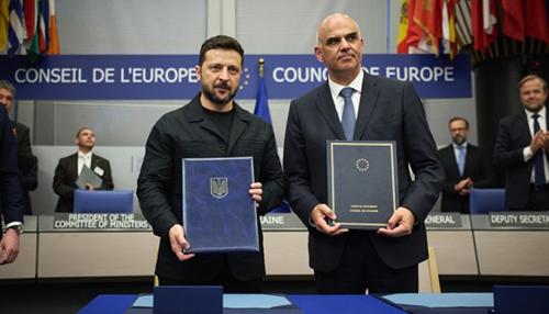 Президент Укра╖ни у Палацу ╢вропи у Страсбурз╕ поставив п╕дпис п╕д угодою з Радою ╢вропи про створення Спец╕ального трибуналу з╕ злочину агрес╕╖ РФ проти Укра╖ни.