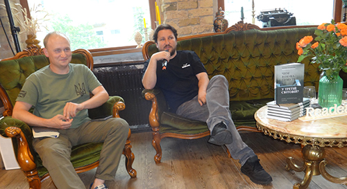 На фото (зл╕ва направо): Антон Мартинов, засновник видавництва «Лаборатор╕я», в╕йськовослужбовець ╕ Роман Романюк