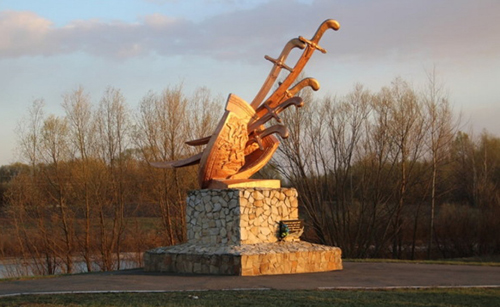На фото – пам’ятний знак ╕з шаблями на честь перемоги в╕йськ п╕д проводом гетьмана ╤вана Виговського поблизу Конотопа