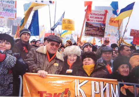 По дорозі додому, до свого Армянська, наша давня читачка й авторка, кримська поетеса Єва Мартиянівна Пономаренко забігла до редакції і висипала на стіл цілу купу фотографій з Майдану Незалежності. "Копіюйте, що треба для газети, а я вам не залишу, бо мене на заводі чекають, щоб я показала, що там у Києві було!" Пані Єва тиждень була на Майдані. Вона виїхала туди 27 листопада - у день народження сина, хоч він дуже чекав матір на своє 13-ліття в Одесі (син вчиться там в інтернаті). "Він мені вибачить, бо вже не маленький і зрозуміє, ради чого я і сотні тисяч людей з усіх куточків України стільки мерзли на Майдані", - говорила наша гостя, коментуючи фотознімки і ділячись революційними столичними враженнями. "Там стільки було кримчан! Оце я з нашим кримським козацьким отаманом Ніколаєнком, а це голова кримського КУНу Василь Овчарук з транспарантом "Крим за Ющенка". А знаєте, люди на Майдані чомусь не вірили, що ми з Криму - і підтримуємо опозиційного кандидата, навіть паспорти питали! Але були дуже раді, що в Криму є справжні українці. Хоч справа зовсім не в національності - ось, дивіться, я з рабином, ми "нас не подолати!" разом кричали, а їхня київська єврейська громада допомагала приїжджим, не питаючи, у яку церкву вони ходять. Бо у нас один Храм - Україна..." Єва Пономаренко роздавала на Майдані свою книжечку "Журавлиний спів", яка роз'їдеться тепер по всій Україні. Маємо підстави сподіватися, що наступна книга нашої землячки, натхненої помаранчевим революційним Майданом, не за горами!