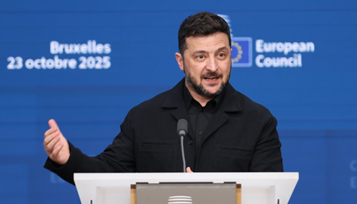 Як переда╓ кореспондент Укр╕нформу, про це заявив Президент Володимир Зеленський п╕д час сп╕лкування з журнал╕стами 23 жовтня у Брюссел╕, коментуючи питання, чи представить Укра╖на разом ╕з ╓вропейськими партнерами мирний план. Трансляц╕ю сп╕лкування з журнал╕стами зд╕йснював Оф╕с Президента, Укр╕нформ ретранслював под╕ю на сво╓му ютуб-канал╕.