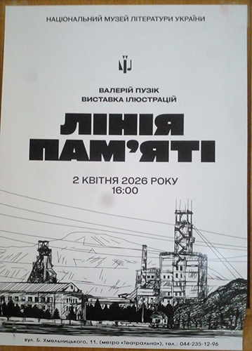 У Нац╕ональному музе╖ л╕тератури Укра╖ни в Ки╓в╕ в╕дкрилася виставка мистецьких твор╕в Валер╕я Пуз╕ка «Л╕н╕я пам'ят╕». Автор – письменник, художник, сценарист, режисер ╕ в╕йськовослужбовець ЗСУ – представля╓ власн╕ книжков╕ ╕люстрац╕╖, еск╕зи до п’╓с, живописн╕ роботи сер╕╖ «П╕вденний пейзаж».