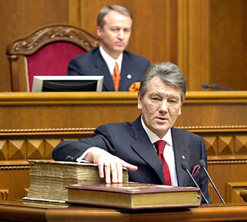 23 січня третій Президент незалежної України Віктор Ющенко на урочистому засіданні Верховної Ради, присвяченому інавгурації нового глави держави, склав присягу на вірність українському народу. Поклавши руку на Конституцію і на Пересопницьке Євангеліє - рукописну пам`ятку староукраїнської літературної мови, - він присягнув на них, підписав текст присяги та передав її главі Конституційного Суду. Голова КС оголосив, що новообраний Президент склав присягу у відповідності зі статтею 104 Конституції і вступив на пост Президента України. Голова Центральної виборчої комісії вручив Віктору Ющенку посвідчення Президента України, а голова Конституційного Суду - офіційні символи влади. Колишній Президент України Леонід Кучма склав свої повноваження перед новим главою Української держави. Віктор Ющенко доручив уряду, що також склав на засіданні парламенту свої повноваження, продовжити роботу до формування нового складу Кабінету Міністрів.