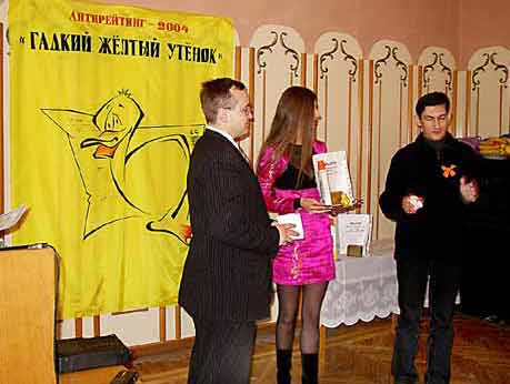 Антирейтинговий конкурс "Гидке жовте каченя" можна було б вважати просто приколом, своєрідним дружнім шаржем, якби це дійство відбулося в межах однієї журналістської "компашки" або ж предметом критики не стали дуже серйозні, навіть принципові для деяких журналістів речі. Тож не всі, від кого "вимагалося" бути при доброму гуморі, знайшли для цього в собі сили і бажання. Як, певне, ви вже здогадалися завдяки "кольоровій" характеристиці каченяти, йшлося тут про передвиборну кампанію, а саме: об'єктивність, правдивість і толерантність її висвітлення ЗМІ Криму, що подекуди в поті чола попрацювали на того чи іншого кандидата в президенти. "Переможці" на конкурсі визначалися на зразок "як не треба робити", а "найвидатніші" публікації, з "газет-лідерів" красувалися на стенді. Зрозуміло ж, це були вирізки з "Крымской правды" і "Крымского времени", що буквально "рвали" пальму першості одна з рук іншої! І все ж таки більшість експертів віддали свою перевагу головному редактору "Крымской правды" Михайлу Бахарєву. Його було нагороджено дипломом за зловживання довірою читачів, а також милом для відмивання власного іміджу та плямовиводжувачем. Безуспішно конкурували з цими газетами "Голос Крыма", "Крымская газета", "Крымские известия", "Крымский обозреватель", "Кримська світлиця", "Наш Крым", "Полуостров" та "Республика Крым". І чого варті одні тільки назви, що зустрічаємо в "Крымской правде": "Оранжевая проказа перерастет в коричневую чуму", "Ющенко использует чудовищную ложь", "Помаранчево-прозорий украинский лепрозорий", "Бандеровщина не пройдет", "Это не наши. Это оранжевые "нашисты" и "коренные" в пристяжных", "Украина будет не оранжевой, а коричневой", "Не дайте разрастись оранжевым метастазам", "Бандеровцы готовят оранжево-коричневую чистку", "Крысиные бега в оранжевом интерьере или Удастся ли Америке купить всю Украину?" і т. д. і т. п. А як піклувалася ця газета про здоров'я кандидата в президенти В. Ющенка! Щиро зацікавлені в розслідуванні цього злочину, журналісти стверджують: "Ющенко отравила Тимошенко!" А ще: "Ющенко ждет ужасный конец?" І далі: "Если картина отравления будет развиваться в соответствии с классическими принципами, не исключено, что Ющенко "через несколько недель покончит жизнь самоубийством... Это обусловлено тем, что диоксин приводит к значительным структурным изменениям личности и к депрессии..." А ось вже і справжня аналітика, пов'язана з його хворобою, і оскільки свого "фахівця" в Криму не знайшлось, довелося передрукувати з "Комсомольской правды": "Версия первая - косметическая - Ющенко решил омолодиться перед президентским забегом... И сделал молодильные уколы... Версия вторая - дерматологическая: у Ющенка герпетическая инфекция (герпес) и так называемые розовые угри (розецея). Лечению поддается сложно. К тому же пройти лечение у пана Ющенко нет возможности: то выборы, то революция. Заболевание это серьезное. Так как герпесная версия представляется самой правдоподобной, то для команды Ющенко поцелуи с вождем, надо заметить, поступок". Серед версій і така: "Не исключен самый печальный исход. Называют даже срок: 2 - 3 месяца. А если он станет президентом, править потом будет его боевая подруга Тимошенко?" І ця - не остання. Є й таке припущення: "Команда Ющенко хорошо это разыграла: придумала отравление...". До цього залишається додати, що згідно з на