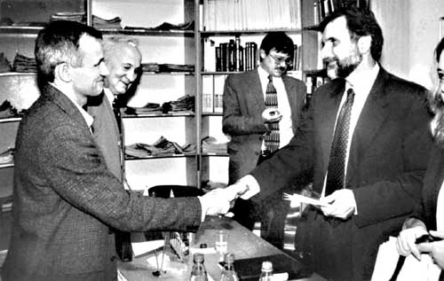 Випуск цього безцінного диску поки що лише в проекті, а "Кримська світлиця" вже на цій зустрічі подарувала Карлосу Паскуалю (див. фото) власний мультимедійний продукт - компакт-диск з підбіркою мелодій найпопулярніших українських народних пісень. І це також завдяки гранту, отриманому "Світлицею" минулого року від Посольства на оснащення редакції сучасною редакційно-видавничою технікою. А те, що у нас ця техніка ще й "заспівала" - не дивина, бо ми ж - найспівучіша газета в Криму.
