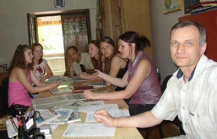 На фото: липень 2004 р., львівські студенти-журналісти в редакції "Кримської світлиці".