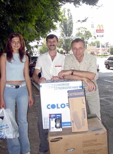 Ще одну добру справу встигли зробити перед від`їздом минулого тижня львівські студенти-практиканти: допомогли "Кримській світлиці" доставити до місця дислокації новенький комп`ютер, кошти на який виділило ПІІ "Макдональдз Юкрейн лтд" у м. Києві. Напевне ж, наші читачі помітили, що минулий номер "Світлиці" з "Будьмо!" прийшов до них із затримкою (ми здали його лише о 2-й год. ночі). Може, й не варто було б знати читачам, що він міг би не вийти взагалі, бо не витримав спеки і навантажень - згорів наш головний редакційний "верстальний" комп`ютер, придбаний ще за царя Гороха. І треба ж, так вчасно "Макдональдз", який уже кілька років підряд підтримує наш мовно-комп`ютерний конкурс "Аладдін", перерахував кошти на наступний головний приз. Ми сподіваємося, що майбутні переможці не образяться за те, що ми трохи поверстаємо на їхньому призові газету. І дуже віримо в те, що серед запитань, які ми через "Світлицю" традиційно задаємо учасникам, не буде такого: дітки, відгадайте, на якій за номером чорній смузі (отій, що внизу, і що вже 21-ша) закінчаться муки газети, яка вручатиме вам цього року вже ЧОТИРНАДЦЯТИЙ (оцей, що на фото) комп`ютер? Кажуть, що ми погано знаємо менеджмент і тому бідувати будемо вічно. Так тож ще треба розібратися, що за тим менеджментом стоїть: бажання набити собі кишені чи посіяти в наше кримське суспільство якнайбільше розумного, доброго, вічного, державницького, українського. Що ж поробиш, якщо воно, оте сіяння - не самоокупне (чи нам з школярів-конкурсантів брати гроші за участь у змаганні?!). Добре, що хоч "Макдональдзу" не треба цього всього пояснювати... Спасибі, привокзальні наші сусіди! Фото В. РУДЕНСЬКОГО.