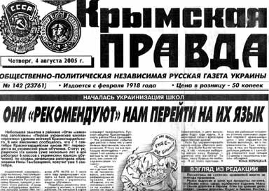 З номера в номер "Крымская правда" здіймає "антимовний" ґвалт, тепер - з приводу відкриття цього року в Криму ще однієї - аж п'ятої всього! - української школи. Це менше одного відсотка від усієї кількості кримських загальноосвітніх навчальних закладів. А українців за останнім переписом у Криму - 24 відсотки. Яка українізація?! Чиї права порушуються?!