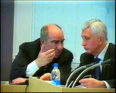 На фото: Борис Дейч - Анатолію Матвієнку: "Ех, казав же я тобі, Анатолію Сергійовичу, що кожен повинен знати розмір свого капелюха..." Фото Віктора КАЧУЛИ.
