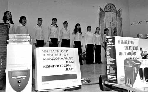 Як і обіцяла "Світлиця", у сьогоднішньому номері "озвучуються" умови ще одного нашого "фірмового" газетного конкурсу - мовно-літературно-історично-пісенно-комп`ютерного, ПЕРЕМОЖЕЦЬ ЯКОГО ОТРИМАЄ В НАГОРОДУ НОВЕНЬКИЙ ПЕРСОНАЛЬНИЙ КОМП`ЮТЕР (вже 14-й в нашій конкурсній історії!) від "Макдональдза" (агрегат уже стоїть в редакції!). Визначити переможця і вручити приз ми плануємо наприкінці цього року - перед зимовими канікулами. Оскільки часу обмаль, конкурс цього разу буде не командним, а ПЕРСОНАЛЬНИМ, причому до участі в ньому допускаються НЕ ЛИШЕ ШКОЛЯРІ, АЛЕ Й СТУДЕНТИ. Відразу відкриємо карти: цим конкурсом і його комп`ютерним стимулом ми прагнемо "висвітлити" в Криму таланти, які, можливо, з часом прийдуть працювати у "Світлицю". Тому, якщо ви добре вмієте висловлювати думки українською мовою або якщо просто хочете потренуватися писати (твори й перекази на екзаменах ще ж ніхто не відмінив?) - і якщо вам не зайвий буде новенький комп`ютер, - долучайтеся до нашого конкурсу! Ось перше завдання: це фото зроблено з Республіканської Дошки пошани у Сімферополі. Ми заздалегідь просимо вибачення у шановного Юрія Федоровича за публічне використання цього прикладу (навіть запрошуємо його у журі конкурсу!), але Дошку пошани й без нас бачать щодня сотні людей. Так от, журналіст повинен уміти не лише бачити, але й оцінювати, аналізувати й коментувати. Уявіть собі, майбутні наші кримські акули пера, телекамери й мікрофона, що ви, прогулюючись по місту, надибали на ось таку "кримськодошкову" транскрипцію. Які роздуми викличе у вас побачене? Чи все нормально - і нєт проблєм? Спробуйте втиснути ваші думки й емоції у два стандартні друкарські аркуші (так званого формату А4). Можна рукописно (тільки не відштовхніть журі своїм почерком!), можна надрукувати - головне, щоб на тих аркушах були думки! Повірте, кваліфіковане журі, до якого ми запросимо поважних кримських (а може, й київських) теоретиків і практиків Слова, за просто так вам комп`ютера не віддасть! Його справді отримає кращий з кращих! Хоч не лякайтеся, будуть і пісенні, й історичні завдання. А у фіналі, до якого журі допустить кращих ДЕСЯТЬ конкурсантів, турнір проходитиме за програмою конкурсу капітанів вже добре знайомого нашим читачам "Аладдіна". А там буде і словотворча комп`ютерна гра "Балда", і пісні, і мова, й історія, і література. І звичайно ж - контрольне творче журналістське завдання, тому не списуйте, бо прогорите! Конкурсні завдання друкуватимуться щоп`ятниці до кінця листопада. Кращі відповіді публікуватимуться на сторінках газети. Ваш лист із відповіддю на завдання і коротенька анкета (обов`язково повідомляйте адресу та контактний телефон, можете надіслати фото) вважатиметься заявкою на участь у конкурсі. За сумою набраних у всіх жовтнево-листопадових турах балів журі і визначить десятку фіналістів. Ми сподіваємося, що наша творча співпраця не припиниться і після фіналу, що буде у нас ще багато комп`ютерів та інших призів, а у редакції - ресурсів для видання тиражної, кольорової, повноформатної, багатосторінкової газети, де юні кримські таланти шліфуватимуть свій дар, формуватимуть громадянську позицію, поглиблюватимуть мовні, історичні, культурні знання - і просто спілкуватимуться! Листи надсилайте до редакції "Кримської світлиці" (95006, м. Сімферополь, вул. Гагаріна, 5, к. 14) з позначкою "Ала
